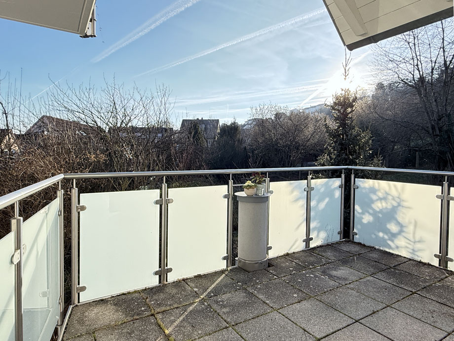 Der große Balkon nach Südwesten ist teilweise überdacht und bietet Platz auch für den Grill.